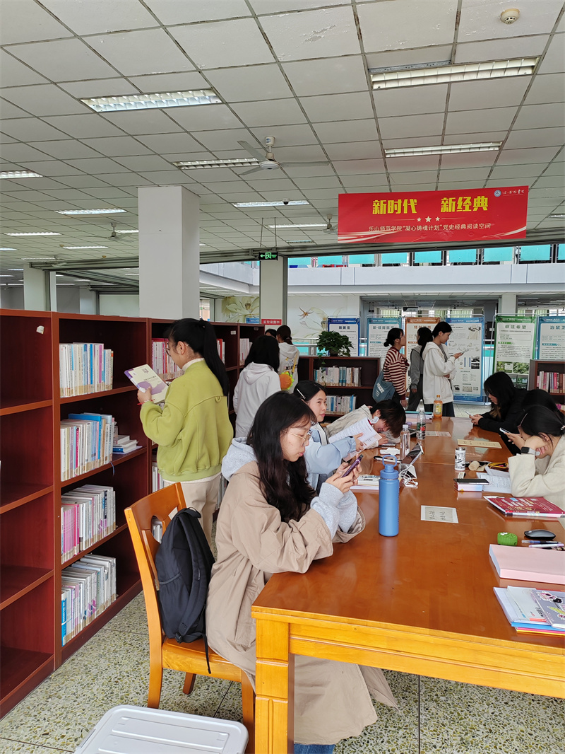 革命文化和红色精神是中华民族共同的历史记忆和宝贵的精神财富,是激励全国各族人民为实现中华民族伟大复兴中国梦而不懈奋斗的力量源泉。各小组成员来到图书馆,在红色经典书籍展览区,从《红星照耀中国》到《青春之歌》,一本本承载着革命记忆的书籍静静诉说着那段峥嵘岁月的故事,吸引着同学们驻足阅读,沉浸在历史的海洋中,同学们纷纷拿起自己感兴趣的书仔细观看,回顾新中国的成长史。在这片承载着无数先烈英魂的土地上,每一本书都是一段历史的见证, 每一次翻阅都是对先辈精神的致敬。让红色阅读成为一种风尚,让红色故事成为激励我们前行的力量,在字里行间寻找那份不忘初心、牢记使命的坚定与执着。红色书籍中的革命精神和英雄事迹能够激发同学们的爱国热情,坚定其理想信念,促进高校“立德树人”教育目标的实现。通过阅读红色书籍,同学们可以厚植爱国主义情怀,树立正确的世界观、人生观和价值观。