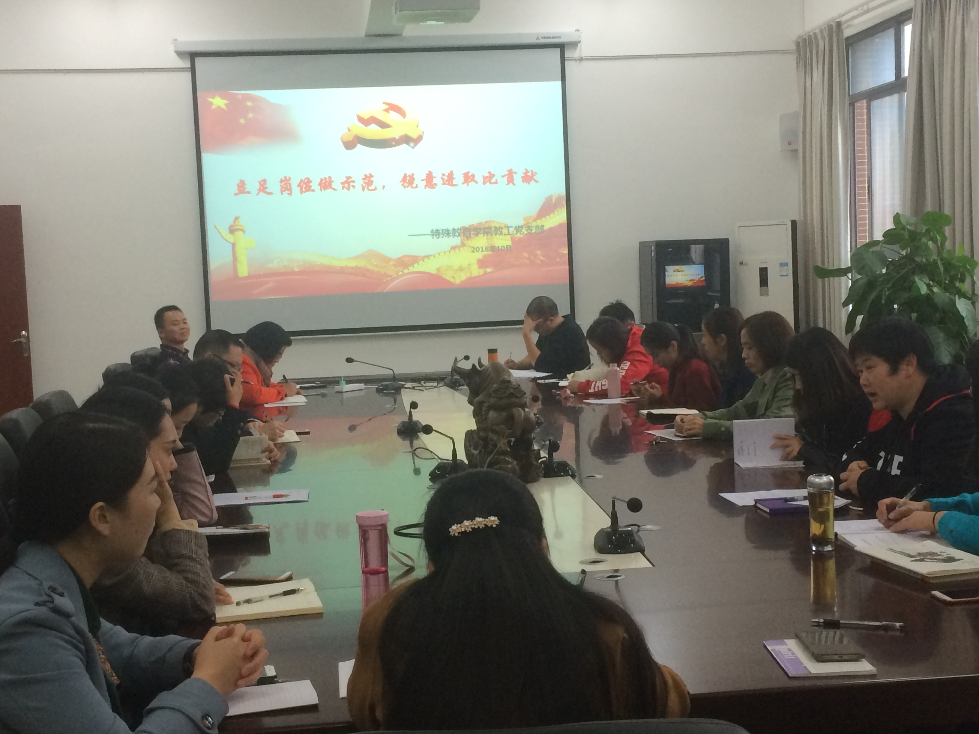 10月18日,betway西汉姆联平台教工党支部在特教大楼A栋408会议室,开展了以“立足岗位做示范,锐意进取比贡献”为主题的党日活动,支部全体党员参加了本次活动,活动由党支部书记苏诚主持。