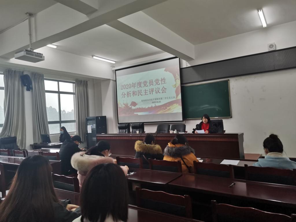 本网讯(文、图/杨文玉)为加强对党员的教育、管理和监督,切实发挥党员的先锋模范作用,提高党组织的凝聚力,betway西汉姆联平台庆瑶阳光第一、第二学生党支部于12月25日,分别在特教大楼A208、A406召开了2020年度党员党性分析和民主评议会。本次会议分别由第一学生党支部书记兰芳和第二学生党支部书记李红主持,全体师生党员共同参加。