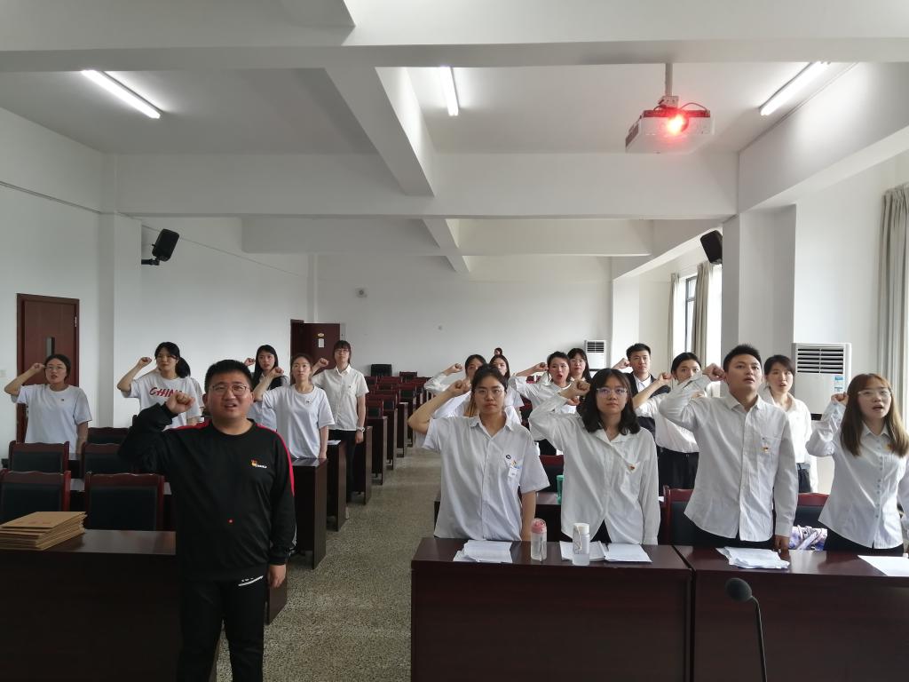 在全体起立,奏唱国歌后,大会听取了代欣玲、沈嘉龙等同志对党的认识、入党动机、本人履历、现实表现、家庭和社会关系情况以及需要向党组织说明的问题。接下来,由他们的入党介绍人分别对他们其表现情况和培养考察情况进行汇报,并对其能否入党表明意见。之后,正式党员在广泛听取了部分党员和群众的意见后进行了投票表决,代欣玲、沈嘉龙等同志均全票通过,党支部正式通过了他们为中共预备党员的决议,并报请党总支审批。最后,学生支部书记兰芳说到,希望所有预备党员能刻苦学习提高自身知识素养,同时要求预备党员做好带头作用,为营造良好的氛围做出贡献。