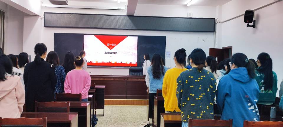 在全体起立奏唱国歌后,教师党员李红、李晓畅给予了全体学生党员未来学习工作的美好寄语。接着,师生党员大家一起观看了一部主题为“党史教育,红色基石”的党史教育基地宣传片。观看结束后,师生党员就观看的视频资料进行了观后感分享,并对自己作为党员进行了未来的展望。党员周静主要讲述了党的执政方法以及对先进党员的崇敬之情,并表示要不断学习,提升自己;党员吴冰冰对“从群众中来,到群众中去”的基本工作路线进行了深入分析,明确我们党员应该深入群众中,为群众解决困难。