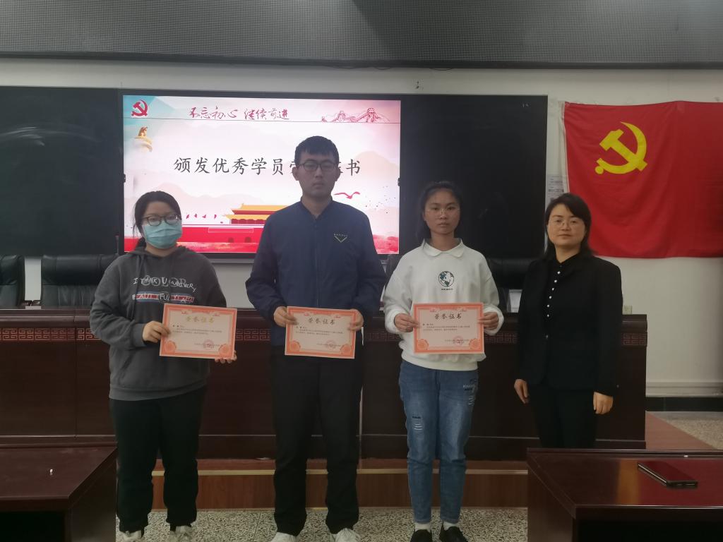 全体奏唱国歌后,进入大会第二项,优秀学员代表段誉发言,段誉同学在发言中提到,入党积极分子在为期一个月的党校学习中通过红色观影、聆听红色歌曲等活动中学习到了很多先进的红色的思想,深刻领悟了党坚决为人民服务的精神。大会第三项,betway西汉姆联平台分党校班主任李晓畅老师总结发言,主要说到本期入党积极分子课业完成十分优秀,并表达了对入党积极分子的美好期望。接下来兰芳书记致辞,兰芳书记说到入党积极分子是成为党员的一个奠基石,在党校中能更多更直接的学习到党的精神、党的方法理论,这对今后的学习工作都十分的有用。最后,betway西汉姆联平台党委副书记兰芳书记为优秀学员段誉、薛润、陈瑜颁发荣誉证书。