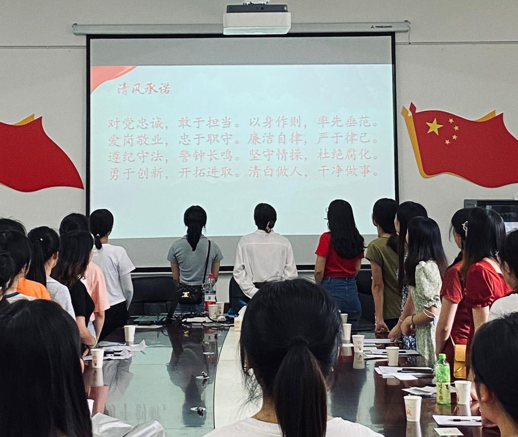 活动开始,全体毕业生党员诵读清风承诺书,在大家铿锵有力的声音中充满着坚定的信仰。活动第二项,为毕业生党员分发学院为每个人准备的清风寄语卡片,卡片上有一句关于“清风廉洁”的短句,希望各位毕业生党员在进入工作岗位后坚守自己党员身份,不忘初心。活动第三项,全体毕业生党员观看清风廉洁教育视频,视频中讲述青年党员在自己的岗位上坚守职责、廉洁为民、不忘初心、牢记使命。活动第四项,进行清风座谈,讨论主题分为以下两个方面,一是为学校可能存在廉洁风险的地方提出意见和建议,二是在未来工作岗位上,作为党员在廉洁方面有何计划。毕业生党员们畅所欲言,大都从学院评优评奖、举办活动两个方面提出意见,对于自身的计划是在其职,担其责,做好人民的公仆。最后刘宗泉书记总结发言,刘书记结合自己的经历,从杜绝贿赂和坚守自身两方面进行分享,主要讲述了工作期间严于律己、坚守本心,以及在工作岗位上做好本职工作,不被外物迷惑,不做出违返党纪的错误行为。