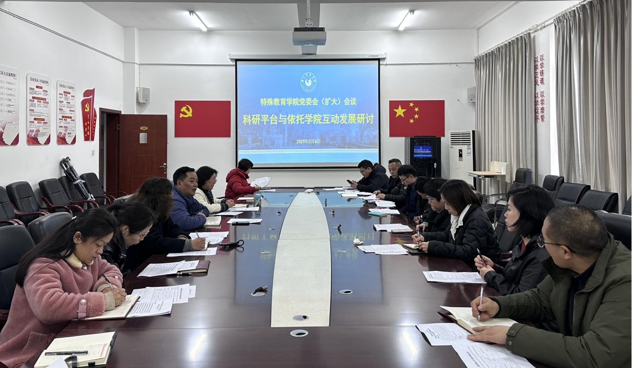 本网讯(文、图/赵清清)为落实全国全省教育工作大会精神和2025年科研工作会精神,统筹推进“教育、科技、人才”三位一体协同发展,促进学院有组织地开展科研工作。3月6日下午,betway西汉姆联平台、康复学院在特教大楼A栋408会议室召开了党委(扩大)会议暨科研平台与依托学院互动发展研讨会,会议由betway西汉姆联平台院长张梅主持,学院党政委员、各级科研平台负责人和全体骨干教师参加了此次会议。