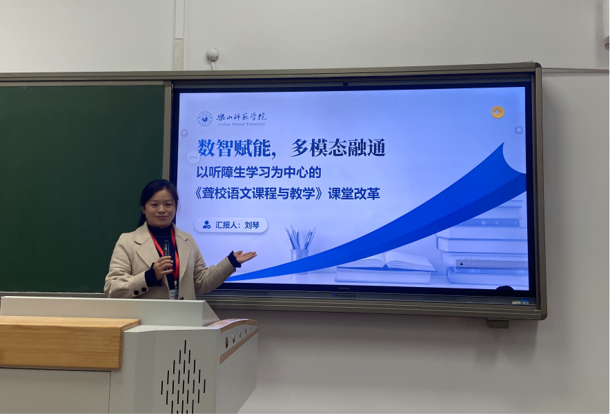 会议为期两天,议程包括主旨报告、分论坛交流、专题研讨等多种形式。11月8日上午,会议举行开幕式暨主旨报告,专家围绕特教政策、学科前沿等分享成果,剖析行业机遇与挑战。当日下午,多场分论坛并行,覆盖“AI赋能特殊教育”“融合教育”“特殊教育师资培养”等方向。刘琴在“数智赋能特殊教育创新研究”分论坛上,以“数智赋能,多模态融通:以听障生学习为中心的《聋校语文课程与教学》课堂改革”为题,聚焦“数智赋能”与“听障师范生发展”双核心,分享了我院国家级一流本科课程《聋校语文课程与教学》探索多模态融通教学新路径的改革实践历程,其内容兼具理论高度与实践价值,引发了与会者的广泛关注和热烈讨论。11月9日上午,会议开展主旨报告与闭幕式。主旨报告聚焦“特殊需要儿童教育质量提升”“特教师资培养体系优化”,专家分享了最新的实践案例;闭幕式总结交流成果,明确未来研究重点。