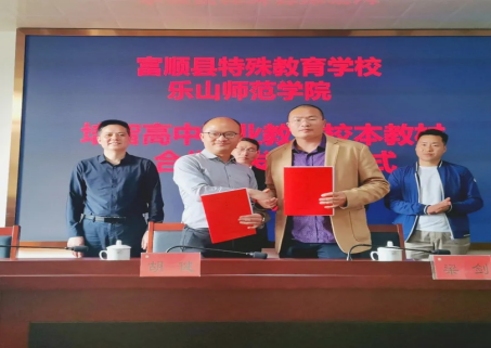 本网讯(文/图 梁剑)2022年3月11日,四川特殊教育发展研究中心梁剑博士和郭玲博士一行到自贡市富顺县,与富顺县特殊教育学校签署了关于残疾人中等职业教育校本课程开发的科研合作协议,会议由富顺县特殊教育学校副校长郭荣强主持,富顺县教体局副局长林光旭、富顺县教体局特殊教育教研员王万祥、富顺县特殊教育学校校长胡健以及富顺县特殊教育学校众多教师参加了该签约仪式。