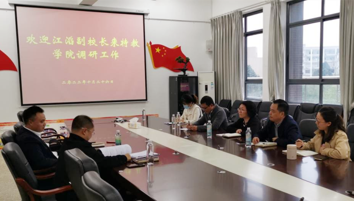 本网讯(文/赵清清 图/张敏) 10月26日下午,学校党委常委、副校长江滔,科研部部长农向到betway西汉姆联平台、康复学院调研科研工作。工作汇报会在特A-408会议室举行,学院院长张梅、党委书记刘宗泉、副院长魏欣、院长助理王振洲、科研秘书赵清清汇报了有关工作。