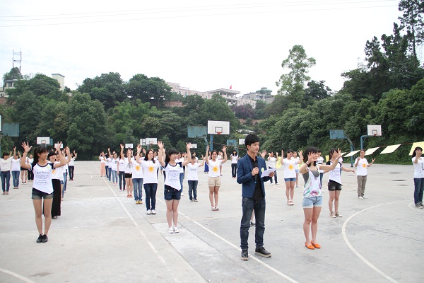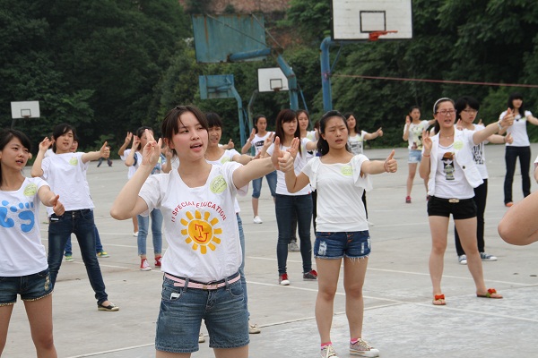 2013年5月19日是全国第23个助残日,教科学院手语协会在北校区篮球场举行由欢行手语组织的“全国万人快闪与手语舞表演公益活动”,全校近两百名手语协会的成员参加了表演,教科学院党总支书记佘万斌、副书记何永红、学生科长宋军和特殊教育专业指导老师张杨观看了本次活动。