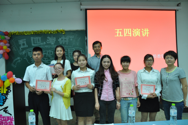 比赛过程中,选手们的出色表现充分表明他们为此次比赛已经做出了精心准备。经过将近两个小时的比赛,分别产生了一名一等奖、一名二等奖、三名优秀奖。比赛结束后,王振洲和杨娟老师为此次演讲比赛作结。他们对同学们的出色表现给予了极大的肯定,并指出了选手们在比赛中存在的不足。另外,老师们还给同学们指出了演讲比赛应注意的“三实”,让同学们受益匪浅。随后,各位评委老师依次为获胜者进行颁奖,并与选手们拍照合影。