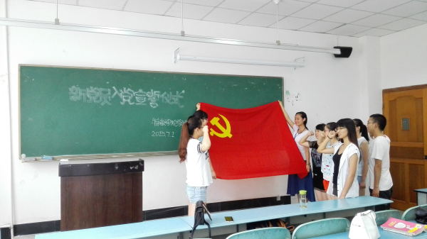 7月1日下午3点,特教学院组织新发展的5名预备党员在行知楼117举行入党宣誓仪式,暨是对建党94周年的隆重纪念,也是对全体预备党员的一次深刻党性教育。特教学生党支部全体党员参与了宣誓仪式,党支书张琪领誓。
