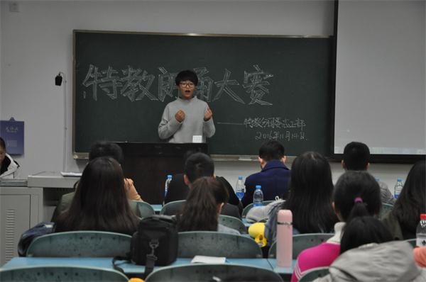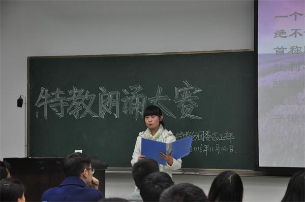 1114晚七点,由特教学院分团委志工部承办的以“理想”为主题的诗歌朗诵比赛在行知楼406举办。出席本次比赛的嘉宾有特教学院分团委副书记阿苦子夫、副书记李兴宇,担任此次比赛的评委是来自文新学院的同学。