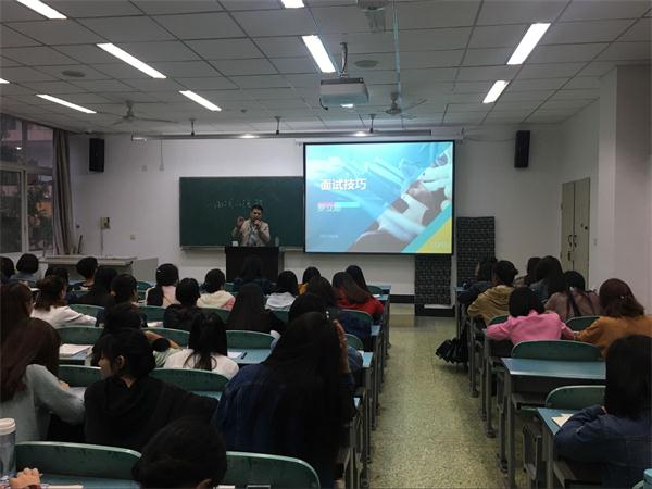 为帮助学生解决面试过程中遇到的疑难问题,熟知面试程序,提高面试技能, 4月26日晚7点,生命科学学院党总支副书记罗立顺在行知楼208为betway西汉姆联平台13、14级学生带来一场关于“面试技巧”的讲座,现场座无虚席。
