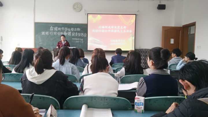 按照院党总支统一安排部署,为扎实抓好党员公开承诺践诺活动,充分发挥党支部战斗堡垒作用以及党员的先锋模范作用,我院于2018年3月27日在行知楼121开展了《党员承诺践诺书》公开承诺活动。此次大会由学生党支部书记张浩东主持,全体学生党员参加了此次会议。