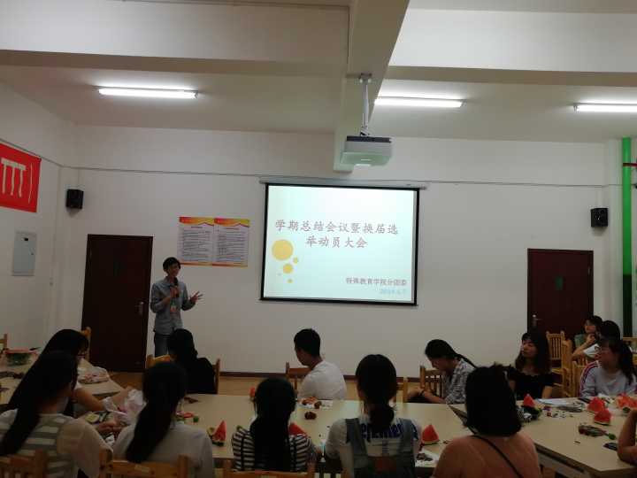 6月8日,特教学院分团委在特教大楼a栋开展了“学期工作总结暨换届动员大会”,大会由组织部部长黎姗姗和李晓畅主持。分团委所有成员参加了此次会议。