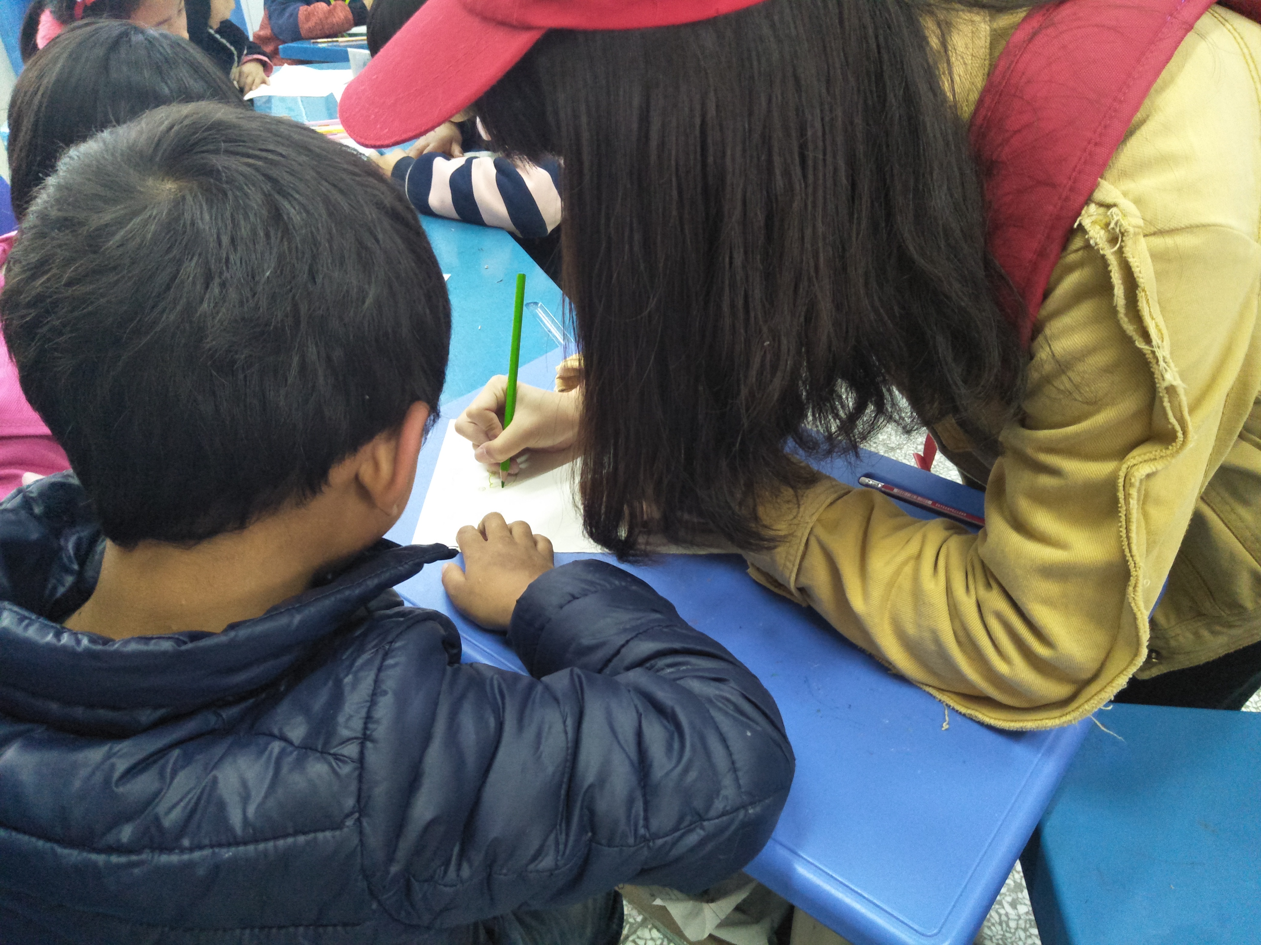 在活动开始前,志管部负责人按活动项目将志愿者分为5个小组。在志愿者的引导下,特校的孩子们根据自身兴趣,迅速投入到不同项目的游戏中。最抓人眼球的还是篮球场上志愿者与孩子们的亲密互动,志愿者们带领熟悉篮球的孩子大胆投篮,教授不熟悉篮球的孩子练习运球;接着便是另一个小球——乒乓球的赛场,从乒乓桌上看到的是志愿者与孩子们的默契配合,虽然输球的孩子抿着嘴,但眼中悦动着对下一次上场游戏的期待;与两组运动球组风格不同,象棋组与与美术组的教室是静悄悄的,这一份静悄悄里有志愿者与孩子们在象棋桌上的博弈,有孩子们执画笔在纸张上挥舞的沙沙的声音。最值得记录的是操场上孩子们自发的小游戏,这一次不再是志愿者教给孩子们东西,而是孩子们拉着志愿者的手,带领志愿者学他们的动作,主动让志愿者进入他们的小世界。美好的时光短暂却饱满,这次的特教之行最终在大合照的咔嚓声中结束。