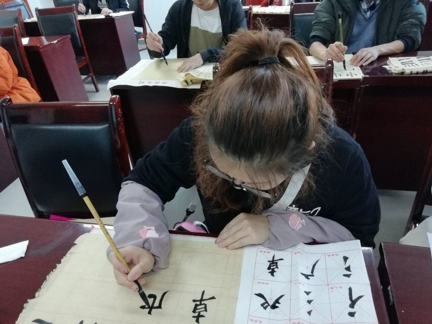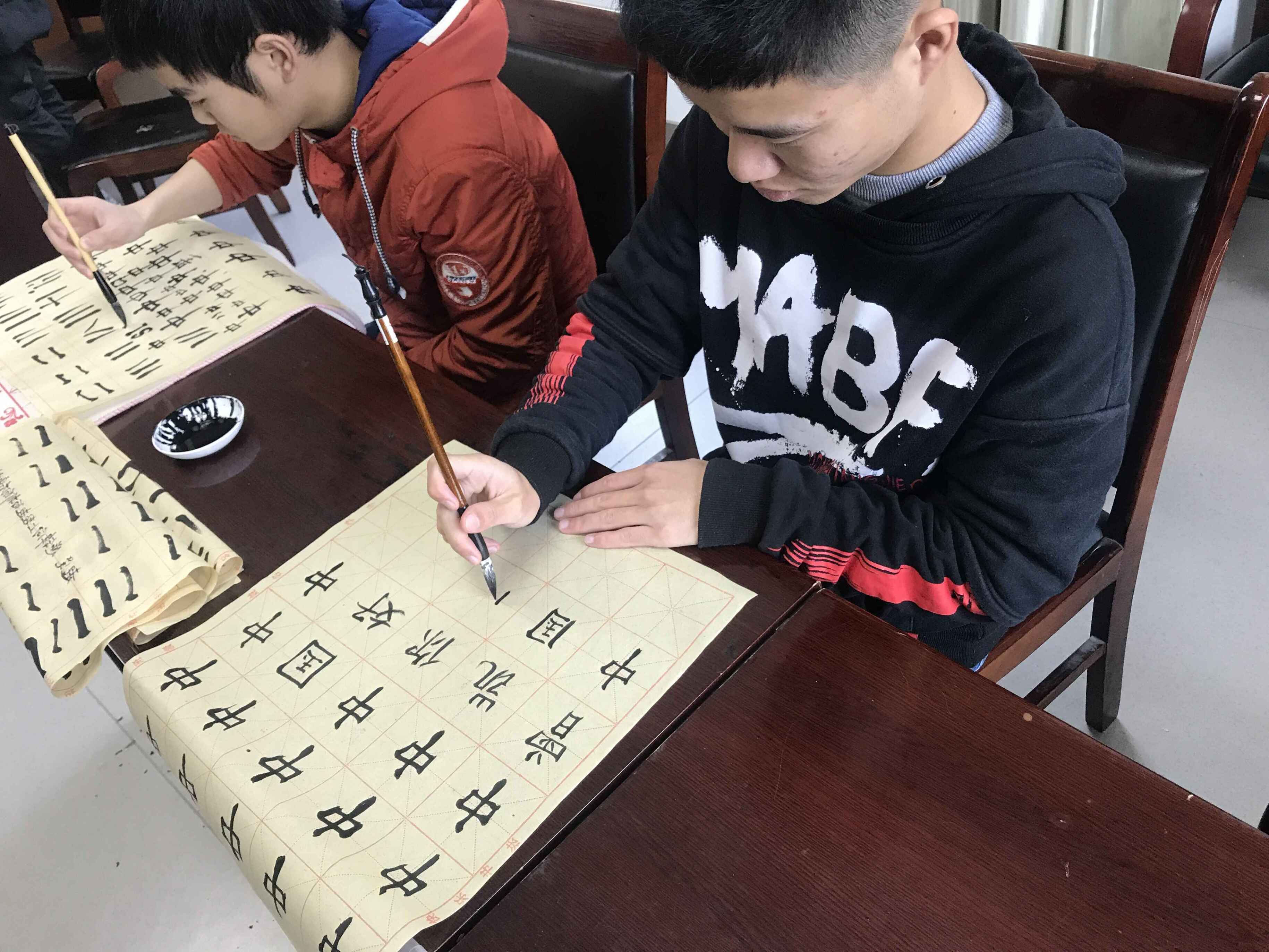 小老师首先指导学生握毛笔的基本姿势,学生们认真学习后,就开始练习基本的笔画。先从“横”和“竖”开始,小老师先在黑板上示范,同学们在掌握了运笔技巧后就开始积极的练习,从笔画到简单的汉字。在同学们练习的过程中,小老师们则对每个同学都进行了一对一的指导。