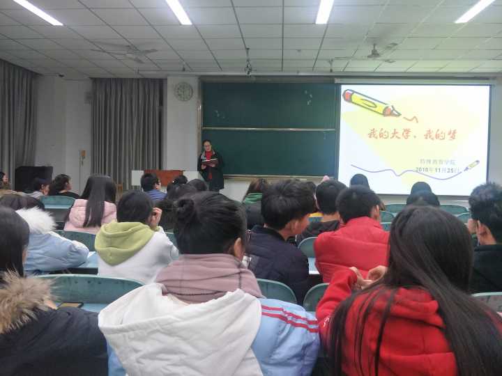 11月25日晚上七点,特教学院在行知楼101召开了以“我的大学,我的梦”为主题的18级周前会。辅导员李红、吴嘉川出席了本次会议,并邀请了18教康二班班主任王欢作为主讲人、18级特教二班代班潘美颖担任手语翻译。