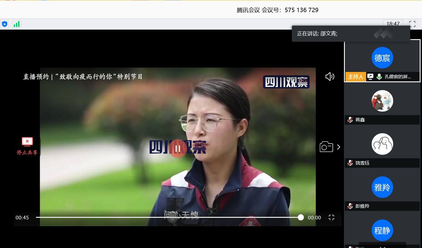 哪有什么岁月静好,不过是有人替我们负重前行。正是有了这些向疫而行的人,才有了我们平安健康的生活。通过观看《致敬向疫而行的你》,同学们对此次援鄂医疗队队员的抗疫故事有了更多了解,这有利于正化同学们的思想,让他们深深体会到责任与感恩的内涵,在这个特殊时期为他们上了一堂生动的思想政治教育课。(审核人:朱志刚)