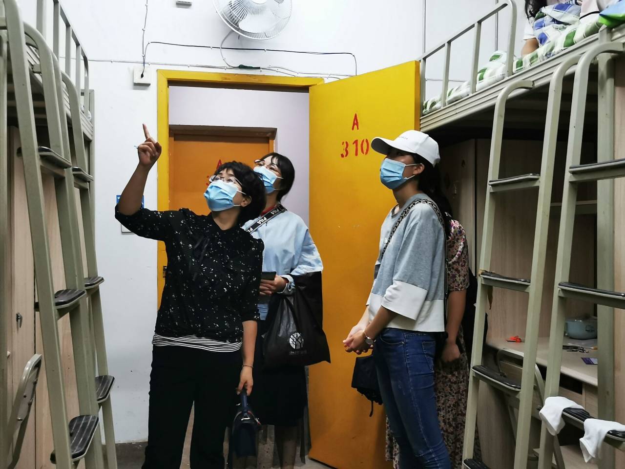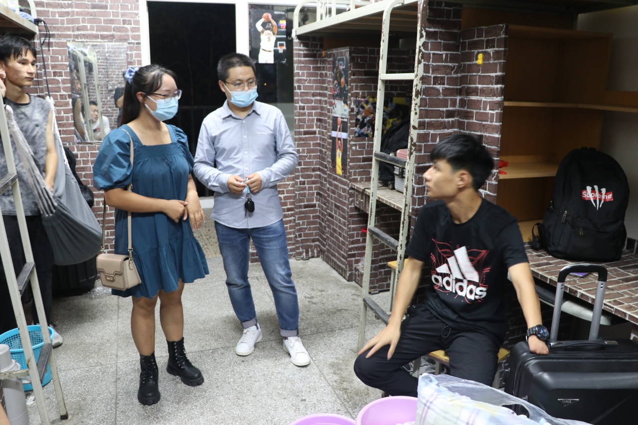 学院领导和老师们分为两组来到特教学院各学生宿舍,一组由刘宗泉带队走访了百一、百二、百五及百八宿舍楼的新生;另一组由张梅和兰芳带队,走访了桂苑、学九、学三以及学十宿舍楼的新生。院领导和老师们亲切地询问同学们到校后的情况,比如到校是否习惯,有无需要帮助的地方等。同时,因为还处在疫情防控的时期,院领导提醒同学们在学校要带好口罩,保护好自己。刘宗泉还嘱咐新生们,在大学期间要学会互帮互助,团结友爱。张梅提示同学们要注意网上诈骗,保管好自己的财务,遇到问题要多询问辅导员老师。兰芳则希望同学们在大学期间,除了要学好专业知识,也要多多参与集体活动,才可以更快更好地适应大学生活。最后,新生们表示到校第一天便能感受到学院对同学们的关怀,这使他们分外感动,也对领导们的来访表示感谢。