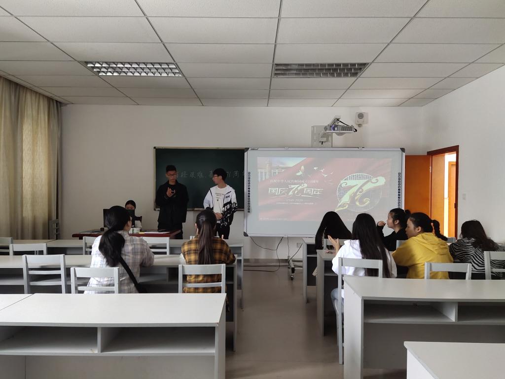 本网讯(文/胡海玉 图/曾悦)为弘扬爱国主义精神,庆祝新中国成立七十一周年,表达当代大学生的爱国主义情怀和战“疫”精神,特教学院2019级各班于9.25、26两天开展了“历经艰难,喜迎71周年”素质拓展活动。