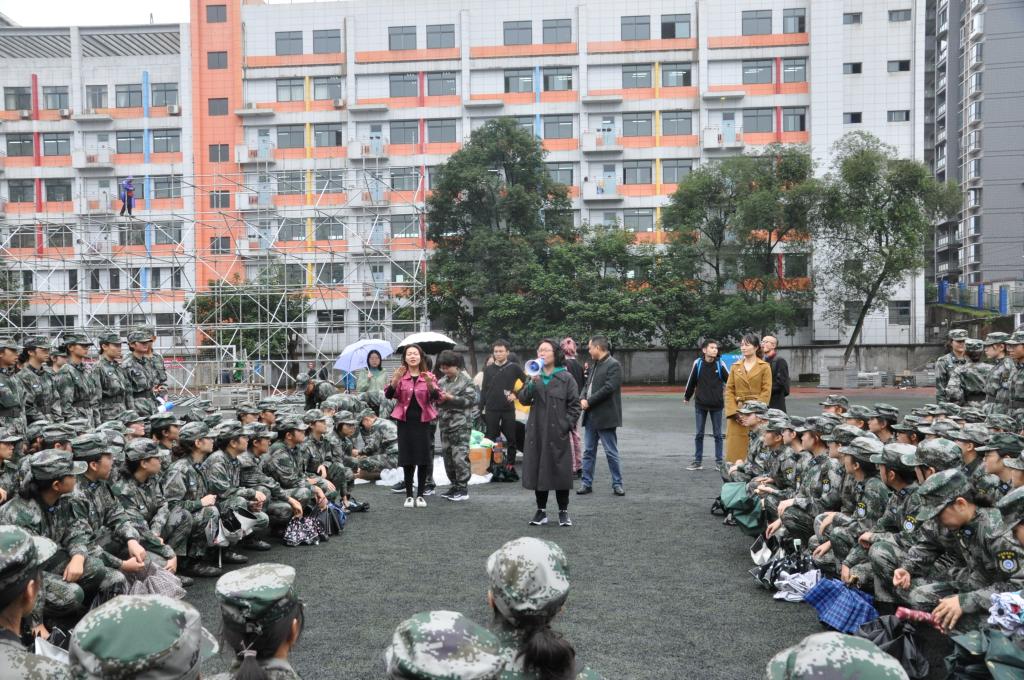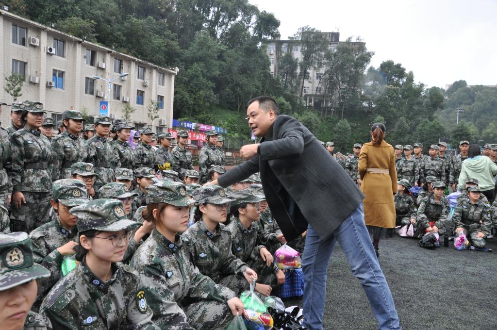 面对一张张青涩但又充满朝气的面庞,特教学院党总支副书记(主持党务工作)刘宗泉、副院长张梅(主持行政工作)先后发言,皆表扬了新生优秀的训练成果,并表达了对新生的期望。学院党总支副书记兰芳鼓励新生要坚持历练,顺利度过这一段难忘而又美好的时期,军训不仅是历练,更是成长。之后学生代表向新生们分发慰问品,表示学院对大家的鼓励和关心。