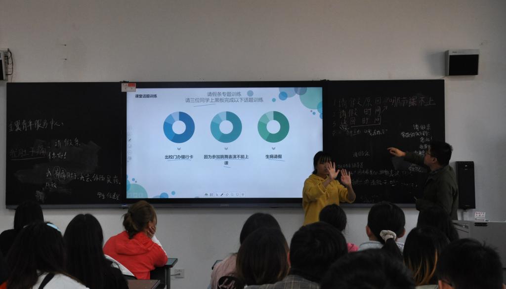 10月22日,培训课在特教大楼A栋506进行,学院分团委书记朱志刚向听障学生讲明了书面语表达的重要性,他讲到,生活中我们会跟不同的人接触,而大多数人是不会手语的,那对于听障人士来说,通过文字表达自己的意思就很重要,如果自己表达不清楚,别人可能会产生误解和不理解,所以书面语的表达能力很重要。讲解完书面语表达的重要性后,朱志刚进而为大家讲解了书面语表达要注意的一些要点。接着,他引导同学们在课堂上练习“请假条”的写作,对他们所写的内容提出了一些修改意见,他在黑板上强调,要写出请假原因、请假时间以及返回时间。最后,他给在座的听障学生布置了练习作业,以“我眼中的父亲”为题写一篇至少200字的练习文章,写好上交后,会有高年级的学生党员为他们“一帮一”的修改。(审核人:朱志刚)