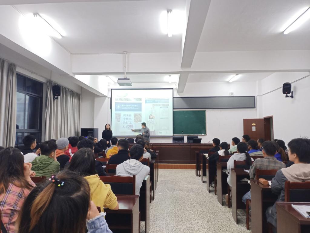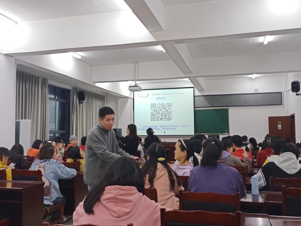 曾志刚首先讲述了达州市达州区刘后浪身患残疾却通过劳动创业改变命运的脱贫先进事迹,随后从三个方面展开讲述。第一方面求职方向,从“我想追谁”的问题引出对就业常识拓展的讲述,包括就业的定义,就业与创业的关系以及对职业价值观的理解;第二方面讲解如何获得求职岗位(我能追谁),以职业能力的塑造为主,指出具备学知识、用技能、攒才干能力的重要性。第三方面求职方法(我咋去追),明确指出学生应该了解就业法律、法规、政策和形势,包括就业扶持政策等相关规定。最后,曾志刚还提醒同学们在求职时要做好求职准备,求职简历要简洁明了、条理清晰,掌握面试技巧也是成功的关键所在。