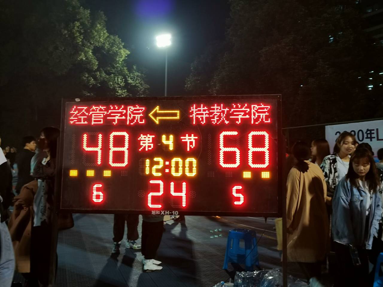 11日晚,篮球场举行篮球联赛,我院仍对“战”经管学院。比赛开始,双方激烈角逐。我院30号眭强首球进框,成功拿下两分。随后,13号韩鸿昊顺利投进一颗二分球!场下喝彩声不断响起,场上队员们配合默契,彼此加油打气,赛场上精彩不断。上半场最终以12号王梓阳迅猛投中二分球结束,特教学院以36:22暂时取得上半场的胜利。接着是女子篮球队上场,她们同样斗志昂扬,迈着自信的步伐开始第三场比赛,她们毫不畏惧,一次又一次调整着战术,最终7号刘丹帅气投进一球,结束了今日的女子篮球赛。在中场休息时,啦啦队上场,用舞蹈为篮球队员鼓舞精神。在观众们的欢呼声中,迎来最后一场,双方队员竞争激烈,我院2号眭世鹏率先投进一个两分球,紧接着5号邓竹均连进两球!比赛结束的哨音吹响,我院最终以68:48的成绩取得胜利!