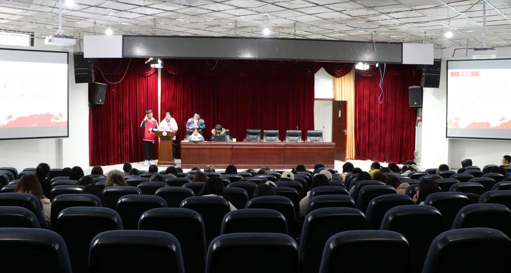 本网讯(文/陈瑜 图/谭玲蕊)11月25日中午,特教学院分团委组织部在特教A栋学术报告厅举办了以“坚定信心跟党走,青春奋进建新功”之青年团员学习十九届五中全会精神的团日活动,本次活动邀请到我院党总支副书记兰芳来为大家讲解,2020级全体青年团员参加。
