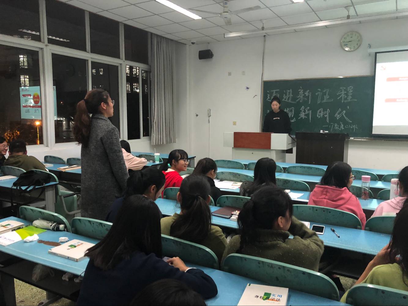 本次“新时代”活动围绕“迈向新征程,拥抱新时代”开展,各班以班会的形式组织同学们观看了名为《团团说‘一干多支’》的团课视频,活动内容丰富多彩。经过这次素质拓展活动,同学们从中汲取了宝贵的知识,培养了同学对青春的向往与对新时代的向往。