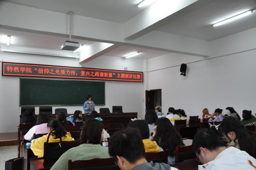 本网讯(文/吴霜、图/伍明菊)为赓续精神血脉,以党的精神力量引领青年学子,激励青年学子敢担当、启航新征程,4月15日,特教学院在特教大楼A栋406举办“信仰之光接力传,复兴之路谱新篇”为主题的演讲比赛。