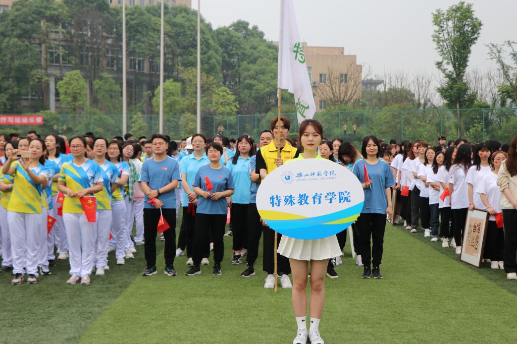 4月22日上午九点,举行运动会开幕式,17个学院的运动员方队依次入场,我院由学院领导、辅导员、普通学生和听障运动员组成的“青春奋斗”主题展演方队第一个入场,赛前,他们辛勤排练,当天,他们以昂扬的风采、青春的舞姿、嘹亮的口号,展现出特教学子的青春活力。开幕式结束后,运动会正式开始,运动员们到各自的比赛项目点检录准备比赛。