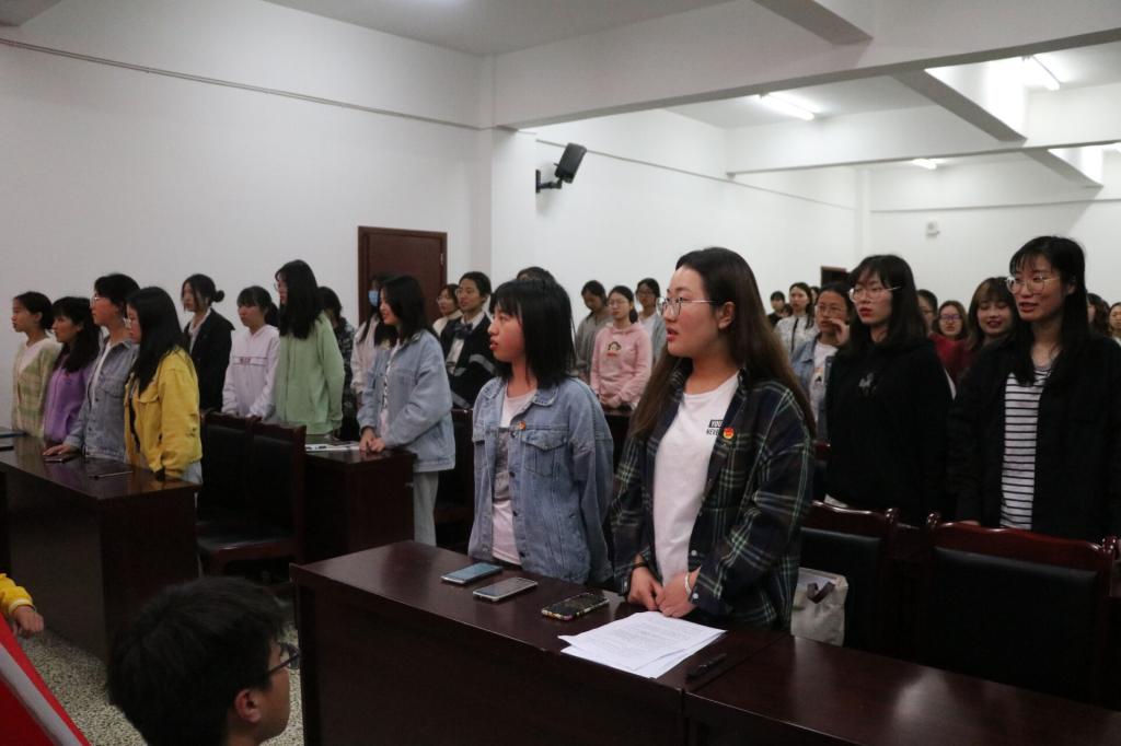 本网讯(文/陈瑜、图/李沅烩)4月26日,特教学院分团委在特A406开展党史学习教育系列活动之青年团员重温入团仪式,2018级、2019级、2020级新发展团员及各团支部团员代表共80名同学到场,学院分团委书记朱志刚,分团委副书记范怀娇、周小渝参加。
