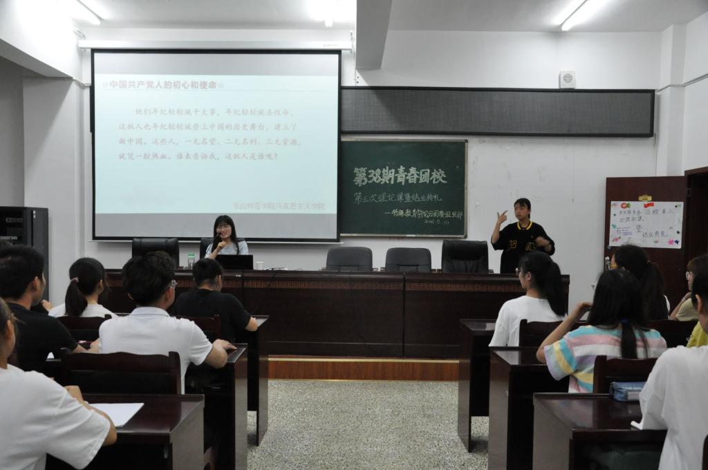 本网讯(文、图/陈瑜)5月10日晚,特教学院第三十八期青春团校第三次理论课暨结业式在特A406举行。本次理论课邀请到马克思主义学院教师张艳沁主讲“中国共产党人的初心和使命”专题,本期团校全体学员参加。