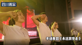 本网讯(文 图/吴霜、张卿)5月14日,由四川省人民政府残工委主办、四川省残联承办、我校betway西汉姆联平台等协办的庆祝中国共产党成立100周年、《中华人民共和国残疾人保障法》实施30周年、第31次全国助残日的主题演出“您是我的眼”在四川省川剧院隆重首演。我校betway西汉姆联平台42名师生排练的手语舞蹈《永远跟党走》参加了晚会压轴演出。