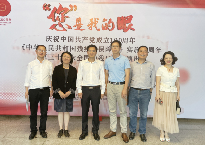 5月14日下午,学校副校长李朝晖、法规处处长罗明礼、科研部部长李银斌以及特教学院院长(执行)张梅、党总支副书记(主持党务工作)刘宗泉等应邀观看了“您是我的眼”首场演出。演出前,李朝晖、张梅、刘宗泉等与出席首演现场的省残联理事长杨志远,副理事长马骏、黄维德等进行了沟通交流。16:00,演出正式开始,精彩纷呈的演出,让大家为导演的精心安排、演员的全力演绎而感动,为我校手语舞蹈节目《永远跟党走》掀起的演出一波又一波的高潮而喝彩,更为四川省残疾人事业的蓬勃发展而欣慰。