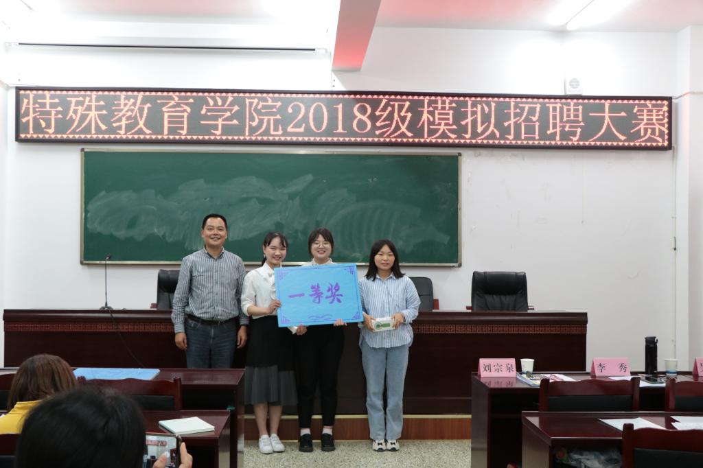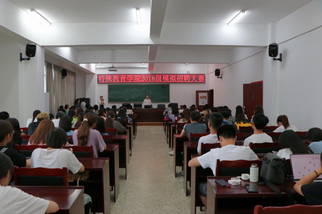 本网讯(文/吴霜 图/李沅烩)为让我院学生熟悉招聘流程,掌握面试技巧、提高应聘能力,5月20日,我院在特教大楼A栋406举行2018级模拟招聘大赛,此次大赛邀请到学院党总支副书记(主持党务工作)刘宗泉、专任教师李秀、辅导员吴嘉川为评委,2018级全体学生参与。