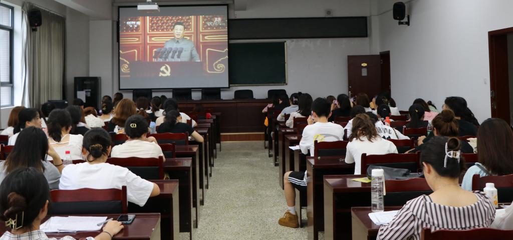习近平总书记指出,中国产生了共产党,这是开天辟地的大事,深刻改变了近代以后中华民族发展的方向和进程,深刻改变了中国人民和中华民族的前途和命运,深刻改变了世界发展的趋势和格局。一百年来,中国共产党团结带领中国人民进行地一切奋斗、一切牺牲、一切创造,归结起来就是一个主题:实现中华民族伟大复兴。习近平总书记的讲话引起了现场阵阵掌声,在座的教师和学生们皆深有感触,催人奋进。
