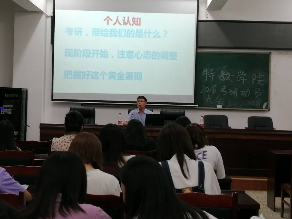 本网讯(文、图/伍明菊)6月30日晚,我院在特教大楼A栋406面向2018级学生举行了考研动员会,我院院长(执行)张梅、党总支副书记(主持党务工作)刘宗泉、党总支副书记兰芳、2018级辅导员李红,以及文都考研讲师刑利明,文都乐山分校招生和院校分析选择老师何红军参加。