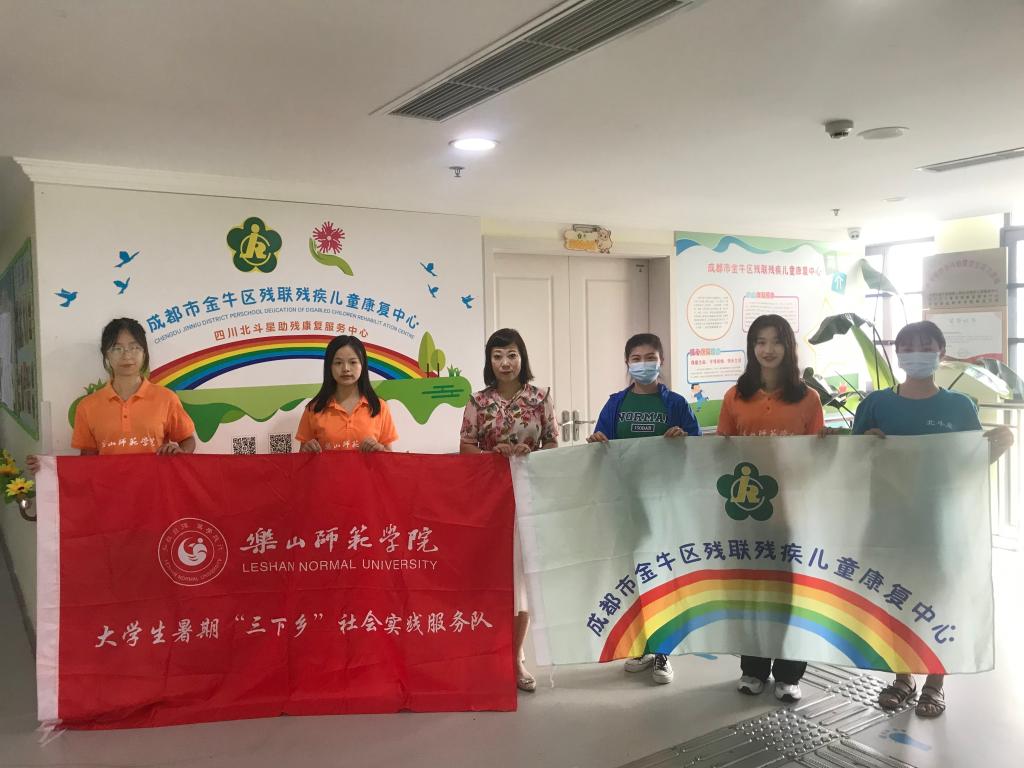 为通过青年志愿服务提升学生的专业实践能力和专业素养,特教学院分团委组织开展了“金翼”助梦暑期社会实践活动,分小组本着“就近便利”的原则,开展关爱特殊儿童与留守儿童的志愿服务活动。7月25、27、28日,“金翼助梦”实践队成员前往四川北斗星助残康复服务中心金牛校区展开参观学习和专业实训。8月4日,“金翼”助梦志愿服务分队四名志愿者来到乐山市市中区智力障碍儿童“小鱼儿”的家中,开展特殊儿童关爱活动。