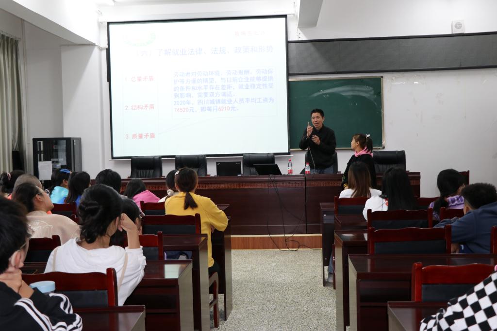 本网讯(文/李小花、图/赵文庆)。为进一步帮助听障大学生了解就业市场信息,提升择业能力,10月11日下午,特教学院在A406会议室开展了大学生就业指导讲座。此次讲座由四川省教育厅原就业处副处长、成渝地区双城经济圈高校就业创业“双百”导师曾志刚主讲,我院全体19级听障本科生,2020级听障专科生聆听了此次讲座。
