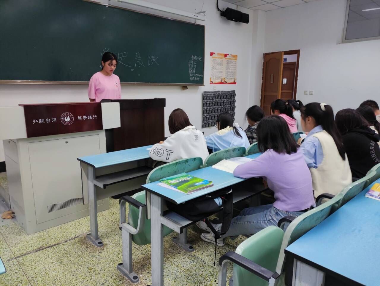 晨读分为团支书领读和自由诵读两部分,朗读内容包括中国共产党简史部分内容、中国共产党的创立和投身革命大红流相关事迹、李大钊与马克思主义传播的相关内容,习近平总书记“奋斗百年路,启航新征程”讲话以及党史小故事等。同学们保持十佳的状态,精神饱满,声音洪亮,在诵读中铭记党的奋斗历程和伟大成就;了解党的光荣传统和优良作风;领悟党的实践创造和历史经验。