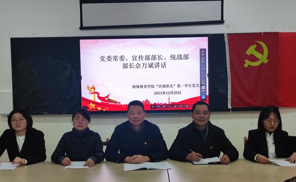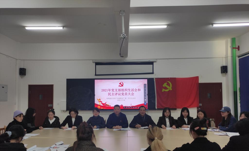 本网讯(文、图/蒲洋)按照学校党组织工作部署安排,“庆瑶阳光”第一学生党支部于12月20日上午9点在特A208召开2021年度党支部组织生活会和民主评议党员。党委常委、宣传部部长、统战部部长佘万斌、党总支书记刘宗泉、党支部书记兰芳及支部全体学生党员,参加了会议。
