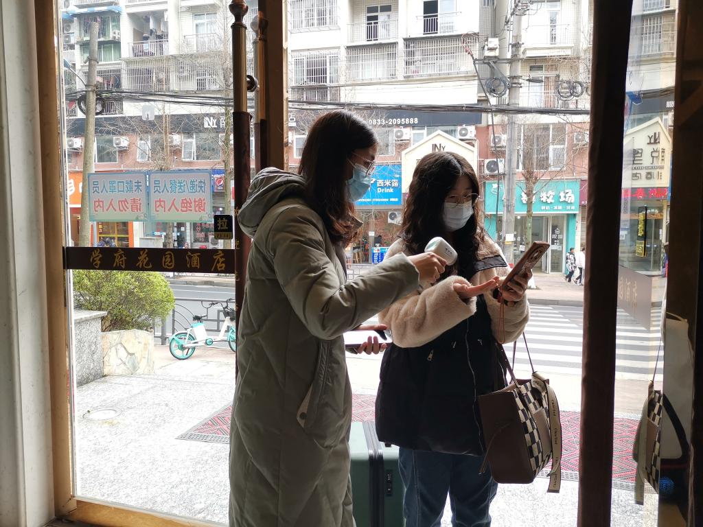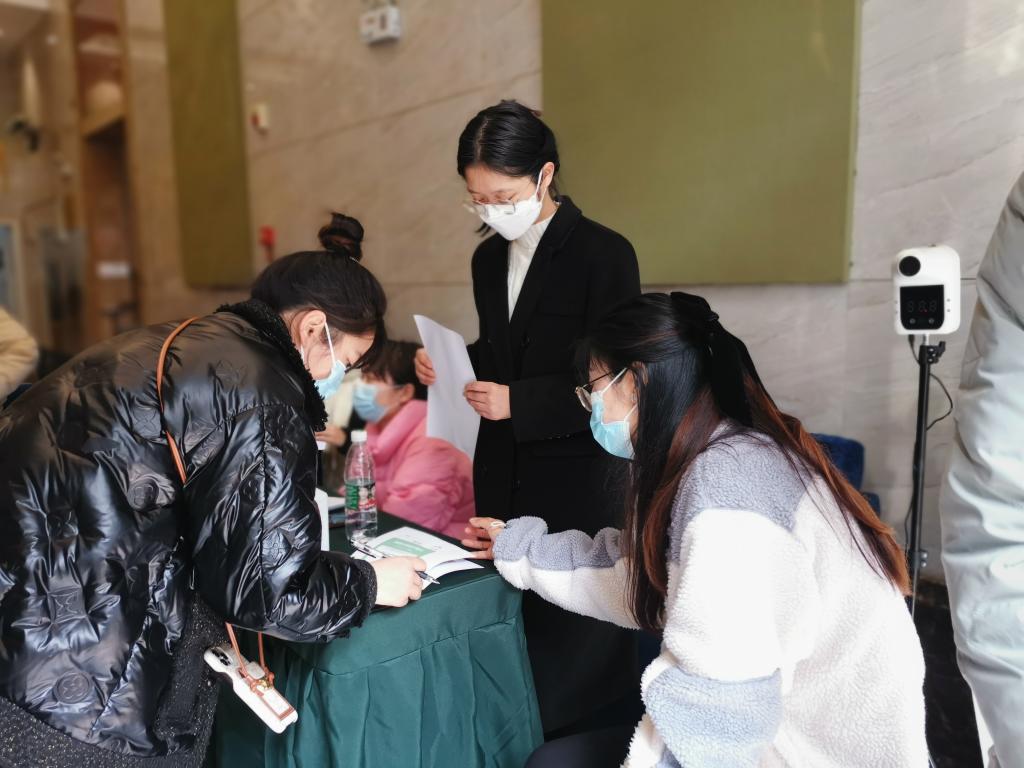 志愿者于2月16日到达学校着手培训准备工作,下午两点参加培训的老师陆续进入酒店办理入住,志愿者余汶芹负责查看健康码、大数据行程卡以及核酸检测报告,志愿者王曼婷负责收集参与培训老师打印的自己的健康码、大数据行程卡以及健康承诺书,志愿者魏艺文负责老师的签到,志愿者卫彩玉负责发放资料袋。待参培老师们全部入住后,学生志愿者便带领参培老师熟悉培训路线,保证参培老师能够找到培训的教室。