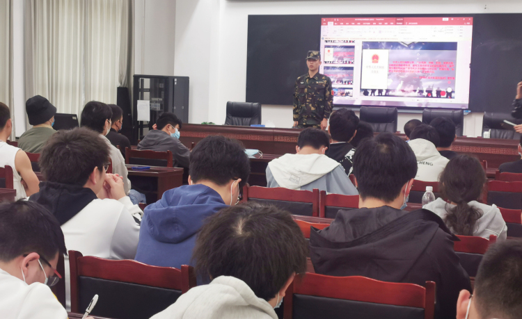 梁光德就大学生征兵入伍有关的升学、就业、经济补助等政策进行了详细的解释和说明,并激励大家作为新时代的大学生应该响应祖国的号召,携笔从戎,为祖国奉献一份自己的力量。徐凌云向大家介绍了本季度征兵工作的预征对象、身体条件等情况,鼓励大家投身绿色军营。会议最后,刘世杰分享了自己由一名大学生成长为一名优秀士兵的心路历程,也向同学们介绍了部队的精彩生活,打破了同学们对部队生活枯燥和乏味的印象,同时也向同学们介绍了边防英雄的英勇事迹和感人事迹让在座的同学们无比动容。