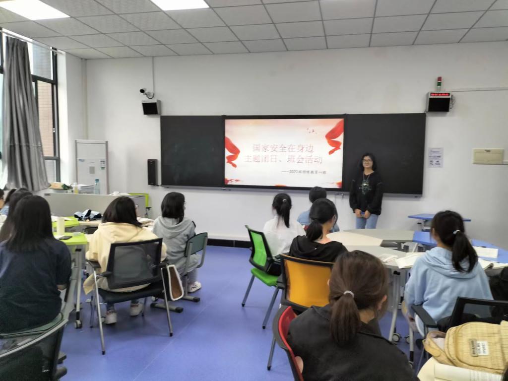线下学习中,各团支部书记带领同学们学习了“国家安全”的内涵与意义,通过播放“国家安全教育”视频和讲解具体案例,进一步强调国家安全的重要性,提高了同学们的安全意识。除此之外,同学们还通过网络途径进行线上“千万师生同上一堂国家安全教育课”的视频学习,大家分小组讨论了当代大学生应该如何看待国家安全问题,最后由各团支部书记进行总结。