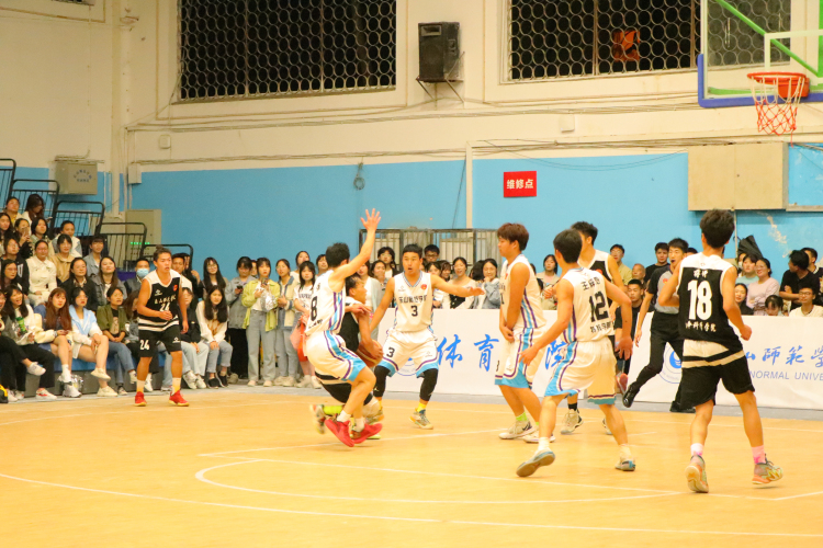 决赛开始前,场内观众区已座无虚席,篮球馆内热血的音乐带动着观众的激情。随着哨声响起,现场的气氛极具攀升,双方很快进入了激烈的角逐,第一节比赛结束比分为18:19。第二节比赛开始,12号球员王梓阳以一个漂亮的旋身投进两分球,增长了团队的势气。比分牌上鲜红的数字不断跳跃着,欢呼声一浪高过一浪。双方的比分交替上升,第二节比赛结束时比分扭转为44:32。啦啦队精彩的表演结束后,女子篮球队上场。14号唐天露运球、踮脚、投篮一气呵成,投入首球!第三节比赛结束时,场上比分为48:44。最后一节比赛开始,在现场球迷的热烈呐喊声中,我院12号球员王梓阳、8号球员眭强接连得分,以大比分领先生命科学学院。随着主裁判吹响哨声,2022年betway西汉姆联篮球赛第一场决赛结束,我院学生篮球队最终以70:63的比分赢得生命科学学院!