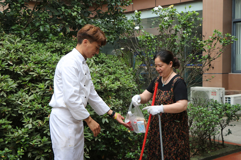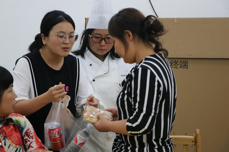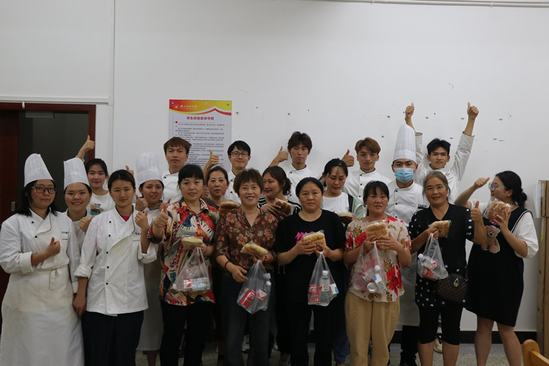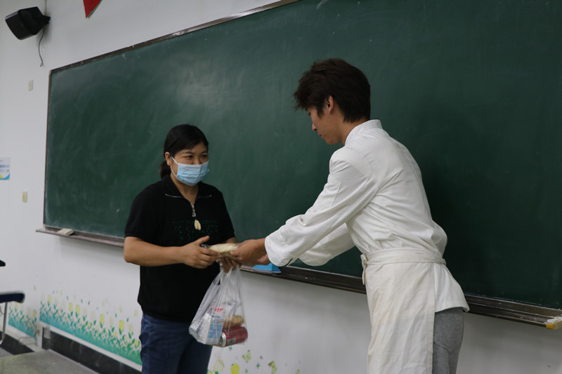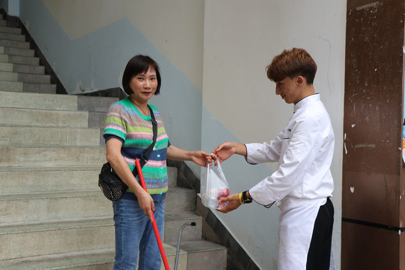 当香气四溢的烘焙成品新鲜出炉,听障学生们带着满心的欢喜与期待,将这些充满爱心的面包、蛋糕、牛奶、矿泉水等亲手送到清洁工人手中。他们用手语、微笑和眼神传递着最真挚的敬意与感谢。虽然言语交流受限,但那份心意却如阳光般温暖,深深打动了每一位校园守护者的心。