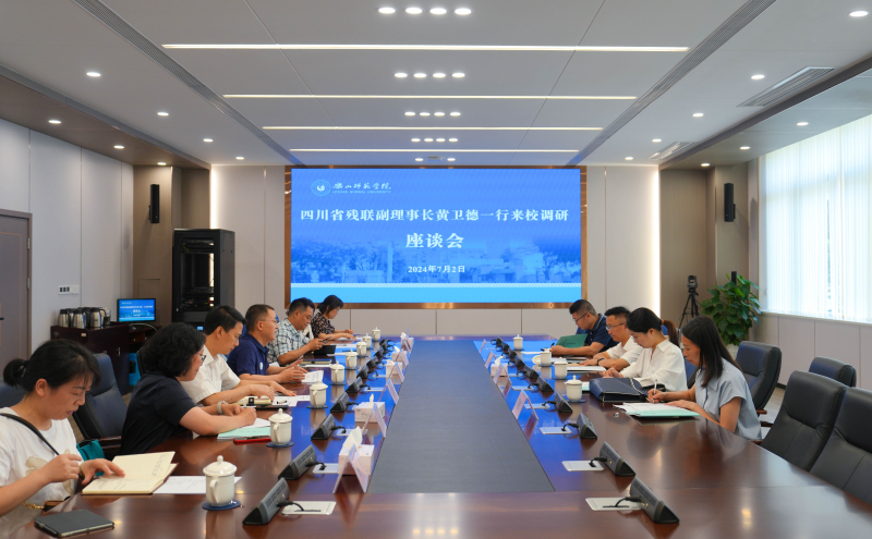 刘进感谢黄卫德一行来我校参加2024年四川省国家通用手语培训班开班仪式,并就落实中国残联主席程凯一行到我校调研指导的有关精神进行专题调研。他介绍了程凯主席一行到我校调研指导的基本情况,指出程凯主席肯定我校特殊教育办学成绩,认可学校对特殊教育未来发展的思考和规划。他表示,程凯主席高度重视特殊教育,认为只有教育才能改变残疾人的命运,希望我校走学科交叉、融合发展之路,做大做强特殊教育,同时拓展残疾大学生招生类别、专业和范围,大力发展残疾人高等教育。程凯主席还强调,用残疾人事业发展经费解决最需要投资的人群问题,首先关注的依然是在校残疾学生。