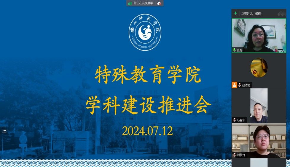 张梅院长首先传达了学校召开的2024年学科建设工作会会议精神,重申学校申硕工作对学院发展的重要意义,指出此次会议为学院的申硕工作和科研工作指明了方向,提供了动力.将以此会契机重新审视特殊教育学专业在学校申硕过程中专业定位;其次,张梅对学院特殊教育言语智能重点实验室、四川特殊教育资源中心等各中心平台,以及即将要建设的国家通用手语普通话测试站建设根据参会教师的专业方向、科研特点进行对应任务整合.最后对学校科研专项经费资助、使用进行详细说明。